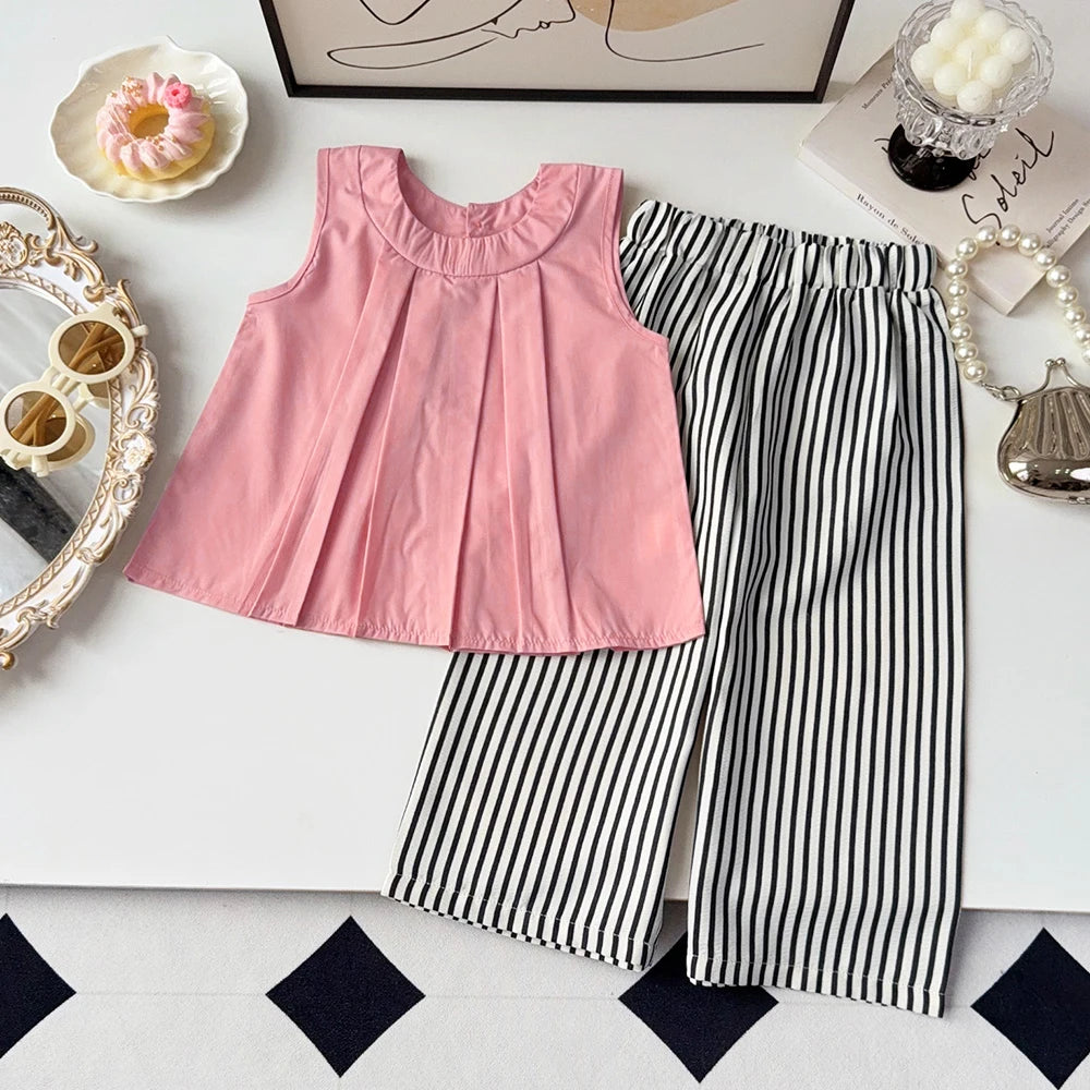 Composto por blusinha regata leve e calça listrada super confortável, está disponível em 3 cores para você escolher a que mais combina com sua pequena.