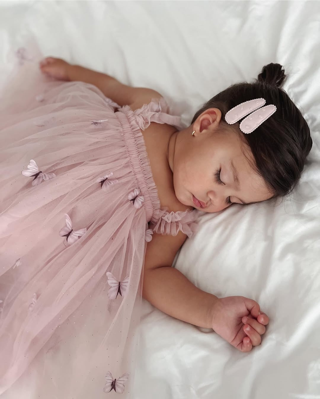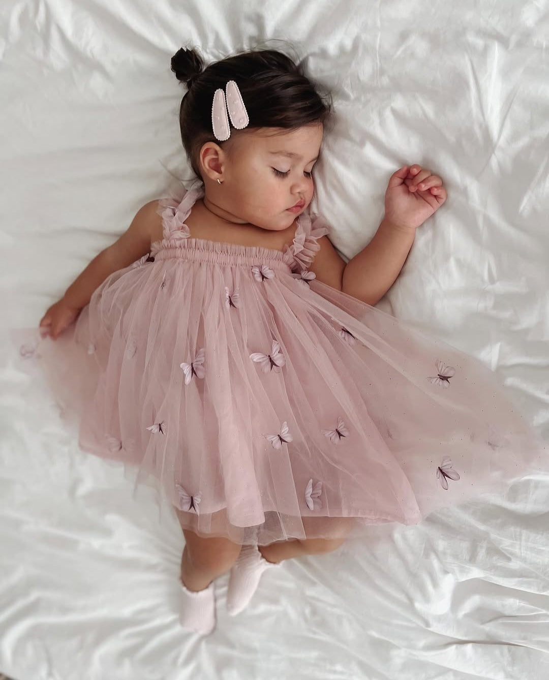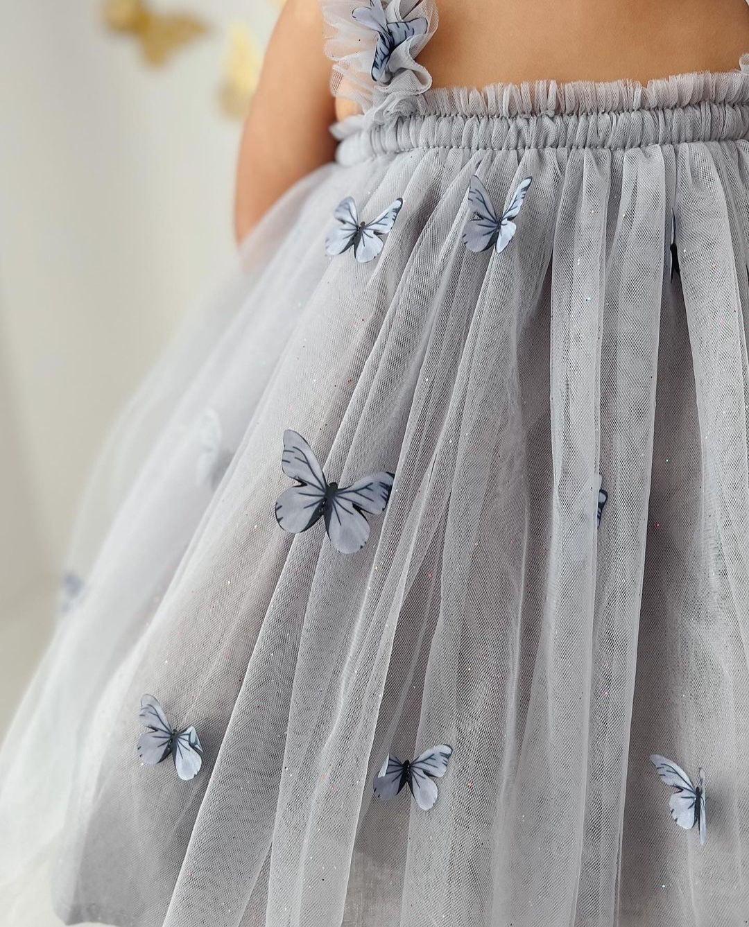 - Design: Vestido de tule com borboletas 3D, criando um efeito encantador e delicado.